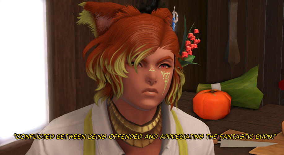 Every time Rarmae has to go back to Sharlayan for a report. Mattie enjoys tending plants and flowers and his Mentor's office (where he crashes when in Gridania) is full of them.